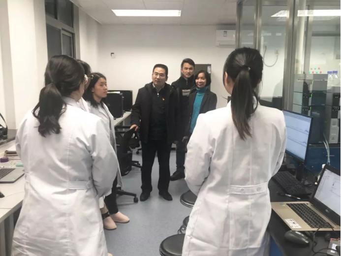 李书记走访了学院老师办公室和各个实验室,对老师们和同学们进行了看望和慰问。在实验室,李书记与同学们进行亲切交谈。在了解大家基本学习生活情况后,李书记提出,一要培养良好的生活习惯,注意劳逸结合,更加积极有效地学习;二要养成良好的学习习惯,提高综合素质。除了掌握专业知识之外,也要多读一些课外书,拓宽知识面,同学间定期相互分享,共同进步。李书记还了解了各类仪器设备运行和试剂存放情况,并对学院工作提出安全要求。