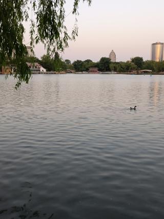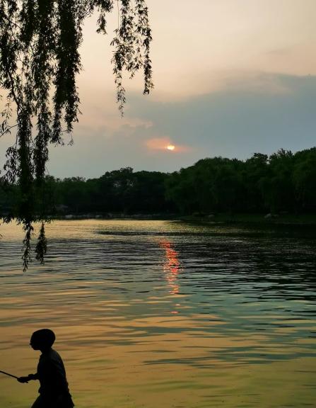 图四:春江水暖鸭先知;夕阳西下,为大地披上了一层金色纱衣,眼前景色变得浪漫又迷人,好一幅春水晚景。在中国,水总是最吸引人的,即使在北京这样干旱的地方,也不乏仿造的各种江南美景,其中也不缺各种人工湖水。而此时鸭子、柳树、夕照则刚好构成了江南美景的要素。